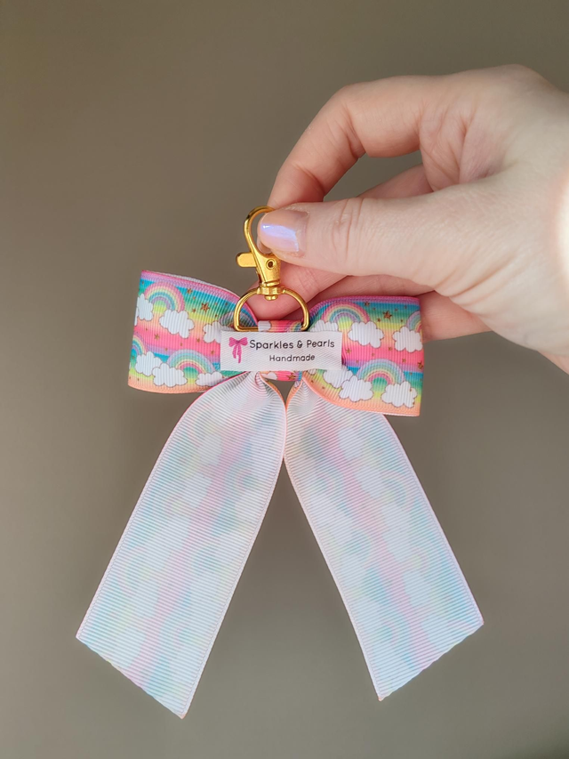 🌈 Rainbow print ribbon bow keychain/bag charm