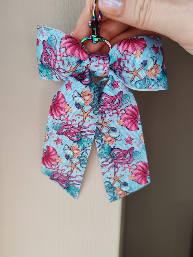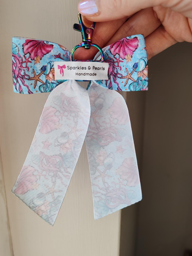 Under the ocean print ribbon bow keychain/bag charm